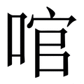 , 拼音为guān, 笔画为11画, 部首为口, unicode编码20D28, 汉语字典解释:同【关】。象声词,同“关关”。例如:关关雎鸠。