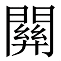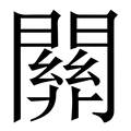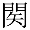 闗, 拼音为guān, 笔画为18画, 部首为門, unicode编码95D7, 汉语字典解释:1、 古同“关”:“雾湿~情月,花香驿路尘。”