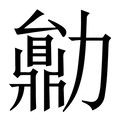 , 拼音为xūn, 笔画为17画, 部首为力, unicode编码208BC, 汉语字典解释:同【勋】。