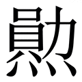 , 拼音为xù, 笔画为16画, 部首为火, unicode编码243E9, 汉语字典解释:mào。,1、 同“勛”。
