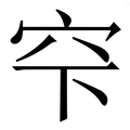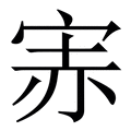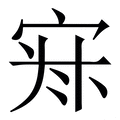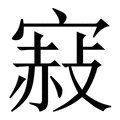 , 笔画为8画, 部首为宀, unicode编码219E4, 汉语字典解释:1、 同“寂”。《字彙補•宀部》:“,與寂同。見漢《張納碑》。”按:《張納碑》作“”。