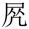 , 拼音为wěi,yǐ, 笔画为9画, 部首为尸, unicode编码21C53, 汉语字典解释:同【尾】。