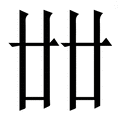 , 拼音为xì,shù, 笔画为8画, 部首为十, unicode编码2099C, 汉语字典解释:,同【卌】。
