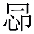 , 笔画为8画, 部首为忄, unicode编码22608, 汉语字典解释:1、 同“怨”。《玉篇•心部》:“怨,恨望也,恚也。,古文。”