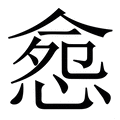, 笔画为11画, 部首为心, unicode编码226EA, 汉语字典解释:1、 同“怨”。《集韻•願韻》:“怨,古作。”