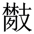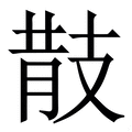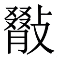 , 拼音为sàn,sǎn, 笔画为16画, 部首为攴, unicode编码22FF7, 汉语字典解释:同【散】。