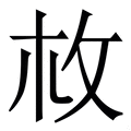 , 笔画为12画, 部首为殳, unicode编码23A9A, 汉语字典解释:【散】的俗字。《干祿字書》:“
