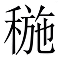 , 拼音为yí, 笔画为14画, 部首为禾, unicode编码25825, 汉语字典解释:同【椸】。