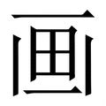 , 拼音为huà, 笔画为8画, 部首为囗, unicode编码211CD, 汉语字典解释:同【画】。
