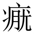 , 拼音为yóu, 笔画为13画, 部首为疒, unicode编码24DCA, 汉语字典解释:同【疣】。
