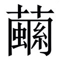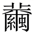 , 拼音为jiǎn, 笔画为21画, 部首为糹, unicode编码261C2, 汉语字典解释:同【茧】。