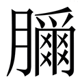 , 拼音为jiǎn, 笔画为19画, 部首为月, unicode编码268A3, 汉语字典解释:,同【趼】。