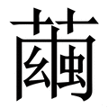 , 拼音为jiǎn, 笔画为15画, 部首为艹, unicode编码26EF7, 汉语字典解释:同【茧】。