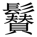 , 拼音为zàn,zuǎn,zā, 笔画为25画, 部首为髟, unicode编码29BF3, 汉语字典解释:,同【䰖】。