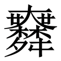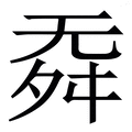 , 拼音为wǔ, 笔画为25画, 部首为舛, unicode编码26A05, 汉语字典解释:同【舞】。[关键文献]:原《异体字表》所收字形作“