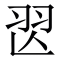 , 拼音为wǔ, 笔画为9画, 部首为羽, unicode编码263F6, 汉语字典解释:同【舞】。