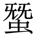 , 拼音为tiǎn, 笔画为10画, 部首为虫, unicode编码27242, 汉语字典解释:,同【蚕】。,古壮字读音denh黄蜂。