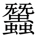, 拼音为cán, 笔画为18画, 部首为虫, unicode编码2746F, 汉语字典解释:同【蚕】。