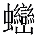 , 拼音为mán, 笔画为28画, 部首为虫, unicode编码27596, 汉语字典解释:同【蛮】。