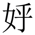 , 拼音为hú, 笔画为8画, 部首为女, unicode编码216DA, 汉语字典解释:同【媩】。