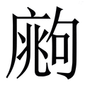 , 拼音为yáo, 笔画为14画, 部首为广, unicode编码22299, 汉语字典解释:,同【铫】。古代一种锄草农具。