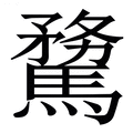 鶩, 拼音为wù, 笔画为20画, 部首为鳥, unicode编码9DA9, 造字法为形聲。从鳥,敄( wù )聲, 本义为野鴨, 汉语字典解释:1、 家鴨。 2、 游水。 3、 同“䨁”。雛雀。 4、 通“鶩”。奔馳。 5、 引申為追求。 ,【鹜】的繁体。