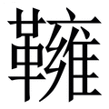 , 拼音为yōng, 笔画为22画, 部首为革, unicode编码29353, 汉语字典解释:靴、袜的筒儿