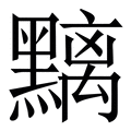 , 拼音为lái,lí, 笔画为20画, 部首为黑, unicode编码2A45A, 汉语字典解释:li2[]大黑。同“”,赤黑色[]①不懂事情;不明事理。冀鲁官话、江淮官话。②不洁;不干净。闽语。