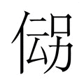 , 笔画为11画, 部首为人(入), unicode编码2CFAA, 汉语字典解释:古壮字读音wnq别(人,处,样)