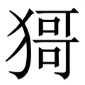 , 拼音为jiā, 笔画为13画, 部首为犭, unicode编码24819, 汉语字典解释:大猴