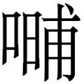 , 笔画为14画, 部首为口, unicode编码31507, 汉语字典解释:读音pu1 蹲。