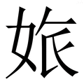 , 笔画为9画, 部首为女, unicode编码21705, 汉语字典解释:同【㛎】。