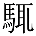 , 拼音为niè, 笔画为17画, 部首为馬, unicode编码298D8, 汉语字典解释:马跑得快