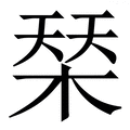 , 拼音为kān, 笔画为12画, 部首为木, unicode编码234C1, 汉语字典解释:1、 同“栞”。《集韻•寒韻》:“,或从开。” ,同【刊】。