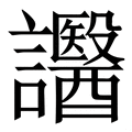 譩, 拼音为yī, 笔画为20画, 部首为言, unicode编码8B69, 汉语字典解释:1、 古同“噫”,叹词。 2、 应答。
