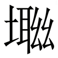 , 拼音为lín, 笔画为15画, 部首为土, unicode编码2145C, 汉语字典解释:同【壣】。