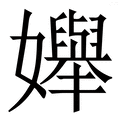 , 拼音为jiē,qì, 笔画为19画, 部首为女, unicode编码21912, 汉语字典解释:同【揭】。