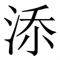 , 拼音为tiān, 笔画为10画, 部首为氵, unicode编码23D5A, 汉语字典解释:同【添】。