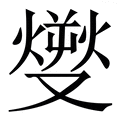 , 拼音为yì, 笔画为23画, 部首为火, unicode编码244D6, 汉语字典解释:同【燮】。xiè。同【奕】。,1、 同“燮”。