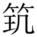 築, 拼音为zhù,zhú, 笔画为16画, 部首为竹, unicode编码7BC9, 造字法为形聲。从木,築聲, 本义为築牆。古代用夾板夾住泥土,用木杆把土砸實, 汉语字典解释:1、 搗土的杵。《廣雅•釋器》:“築謂之杵。” 2、 搗土使堅實。《説文•木部》:“築,檮也。” 3、 修建,建造。《詩•大雅•緜》:“曰止曰時,築室于茲。” 4、 居室;建築物。唐杜甫《畏人》:“畏人成小築,褊性合幽棲。” 5、 搗;捅。《廣雅•釋詁一》:“築,刺也。” 6、 蹴(只用於“築毬”)。唐韋莊《丙辰年鄜州遇寒食城外醉吟五首》之五:“永日迢迢無一事,隔街聞築氣毬聲。” 7、 填塞;裝填。《新唐書•酷吏傳•姚紹之》:“(姚紹之)即引力士十餘曳囚至,築其口,反接送獄中。” 8、 古代製造書刀的工匠。《周禮•考工記•序》:“攻金之工:築、冶、鳬、㮚、段、桃。” 9、 量名。一千二百片葉。《周禮•春官•鬱人》漢鄭玄注引鄭司農曰:“鬱,草名。十葉為貫,百二十貫為築。以煮之鐎