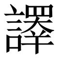 譯, 拼音为yì, 笔画为20画, 部首为言, unicode编码8B6F, 造字法为形聲。從言,睪( yì )聲, 本义为翻譯,把一種語言文字翻譯成另一種語言文字, 汉语字典解释:1、 把一種語言文字依照原義改變成另一種語言文字:~本。~文。~注。~著。~制。~音。口~。筆~。意~。直~。翻~。 2、 解釋;闡述。 ,【译】的繁体。