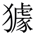 , 拼音为jù,qú, 笔画为15画, 部首为犭, unicode编码24893, 汉语字典解释:,同【豦】。一种大如狗、似猕猴,色黄黑的动物。