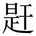 趕, 拼音为gǎn, 笔画为14画, 部首为走, unicode编码8D95, 造字法为形聲。从走,旱聲。( gián)①, 本义为獸類翹起尾巴奔跑。《說文》:「舉尾走也。」②追趕;驅趕, 汉语字典解释:1、 追趕;追逐。《正字通•走部》:“趕,追逐也。今作趕。” 2、 加快行動,使不誤時間。《三國演義》第一回:“快斟酒來吃,我得趕入城去投軍。” 3、 搭乘。如:趕火車。 4、 趁,湊著。明佚名《風月南牢記》第二折:“今日趕箇空,便瞞着周家去走一遭。” 5、 等;等到。《紅樓夢》第七十七回:“已遣人去,趕晚就有回信。” 6、 遇到;碰上。《兒女英雄傳》第十九回:“我除了你曾祖太爺不曾趕上,你祖太爺便是我的恩師。” 7、 驅逐;驅散。《金華子雜編》卷下:"廚人饋食於堂,手中盤饌,皆被衆禽搏撮,莫可驅趕。” 8、 驅策;駕御。《恨海》第五回:“車夫趕着牲口,徑投南道上去了。” 9、 逼迫;迫使。 10、 按照;據。《歧路燈》第一百零七回:“况薛家姑太太,趕舊親是姊妹,論新親則賢弟與甥