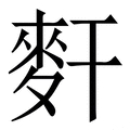 , 拼音为jué, 笔画为14画, 部首为麥, unicode编码2A303, 汉语字典解释:同【赶】。