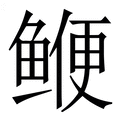 , 笔画为17画, 部首为鱼, unicode编码2B6A3, 汉语字典解释:【鯾】的类推简化字。