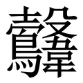 , 拼音为kòu, 笔画为35画, 部首为韋, unicode编码293FB, 汉语字典解释:同【鷇】。