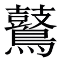 , 拼音为kòu,kū, 笔画为24画, 部首为鳥, unicode编码2A1C4, 汉语字典解释:同【鷇】。,①卵已孵。②鸟蛋