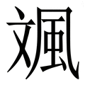 , 拼音为xín,bá, 笔画为13画, 部首为風, unicode编码295A3, 汉语字典解释:姓