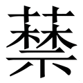 , 拼音为jìn, 笔画为16画, 部首为艹, unicode编码26F54, 汉语字典解释:一种草。,越南汉字读音om,一片漆黑。