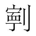 , 笔画为14画, 部首为刀(刂⺈), unicode编码2D111, 汉语字典解释:古壮字读音mid匕首,尖刀。